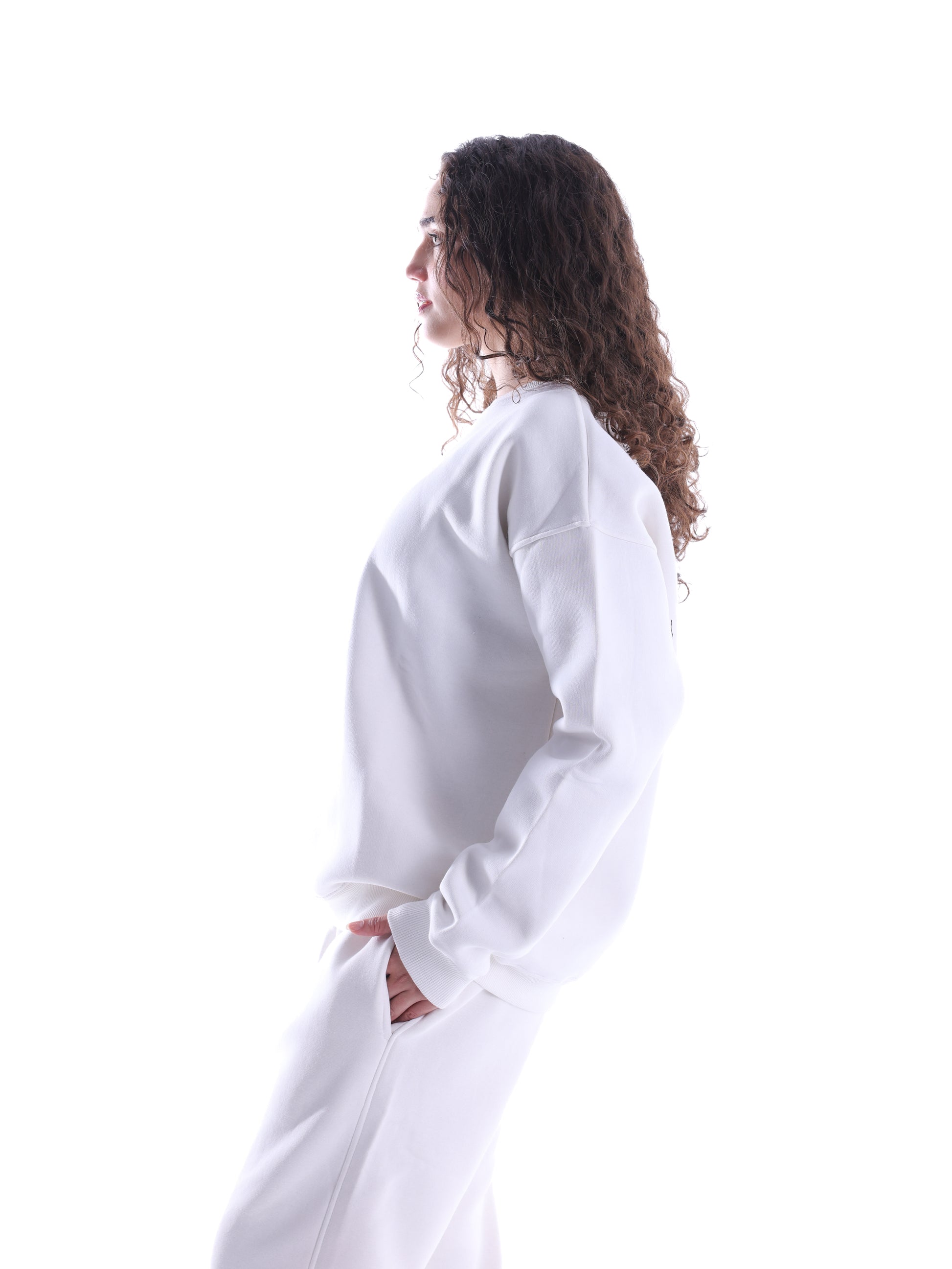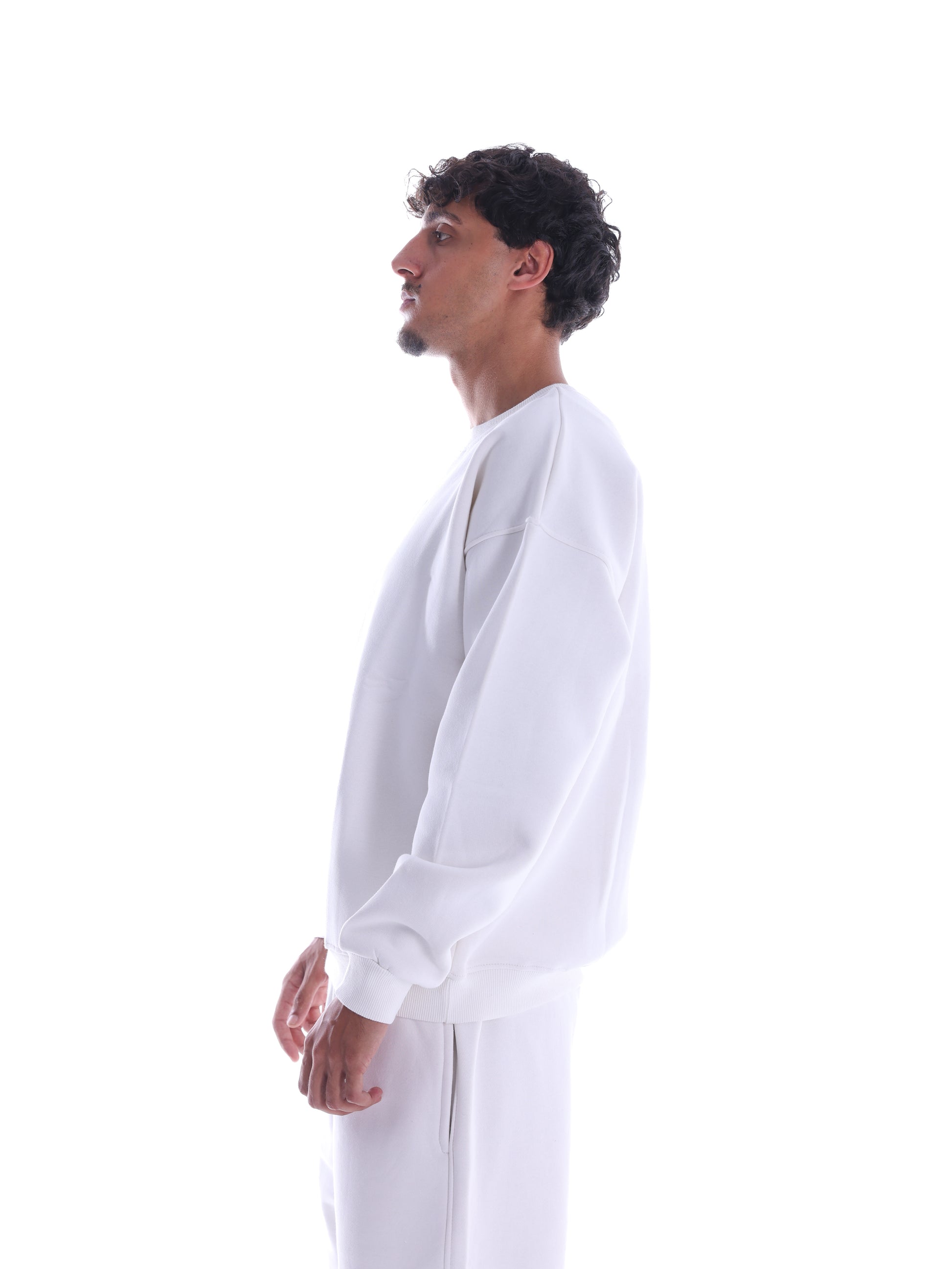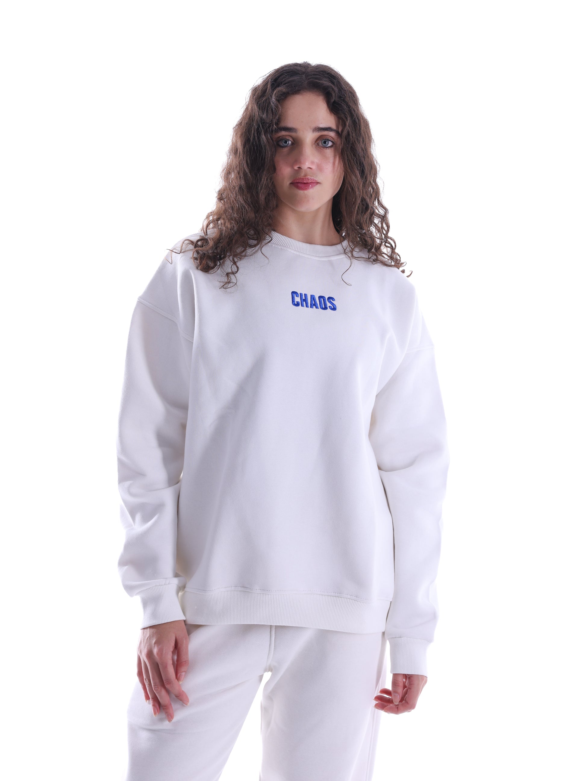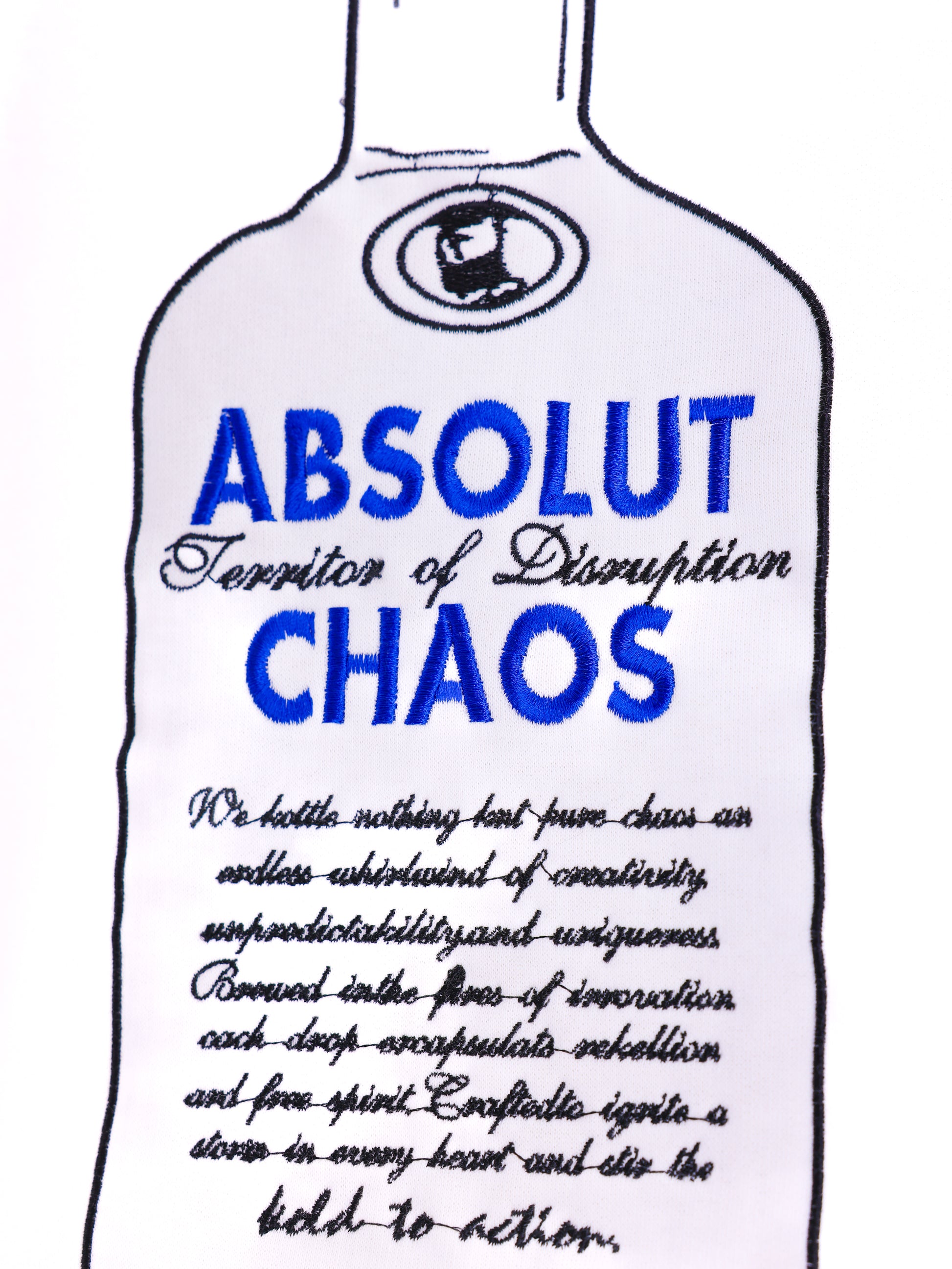 This oversized white crewneck brings chill vibes with a playful bottle embroidered on the back, labeled “ABSOLUT CHAOS” — Made for easy days and late afternoons. It’s your go-to for chaotic adventures.