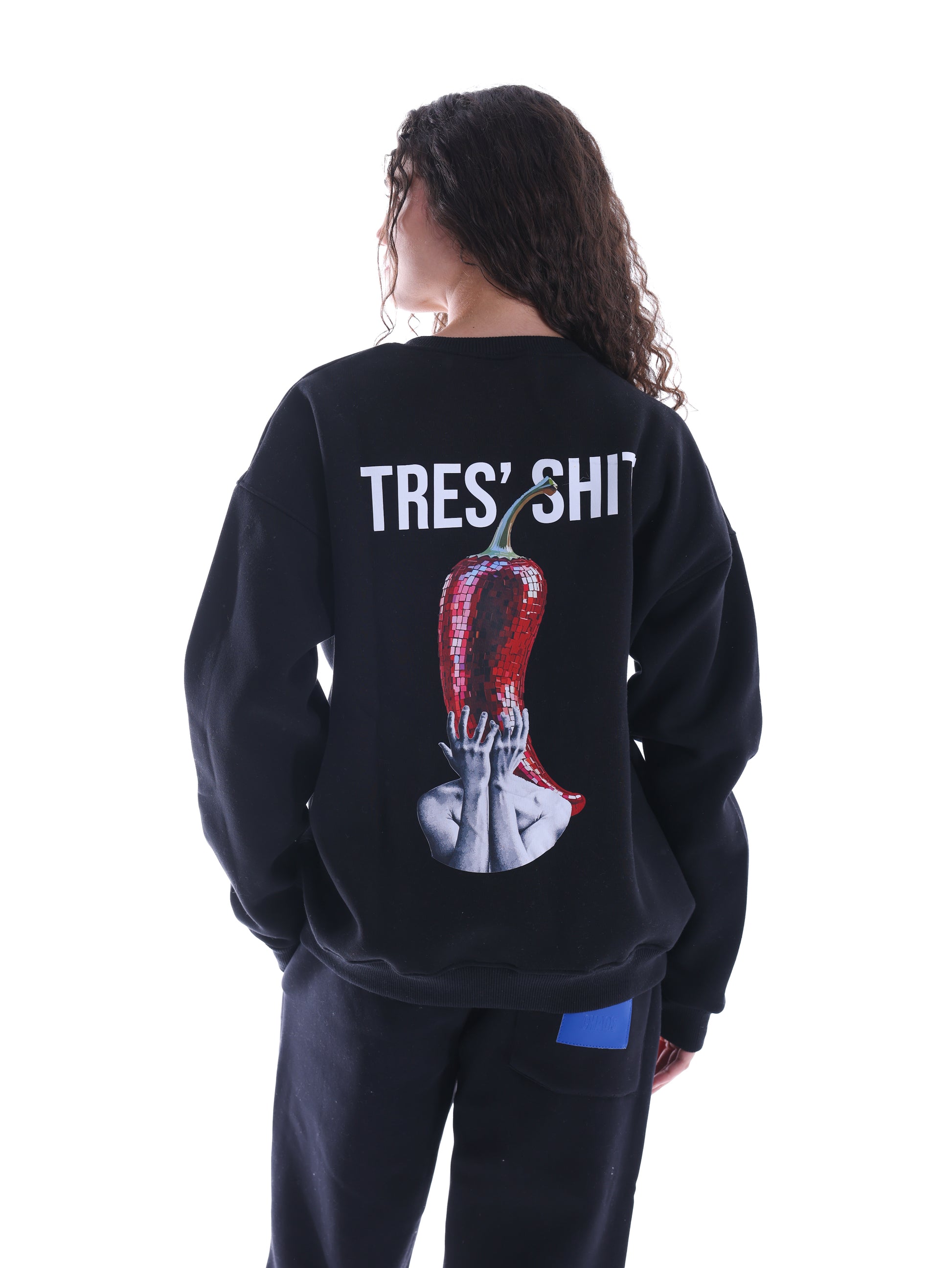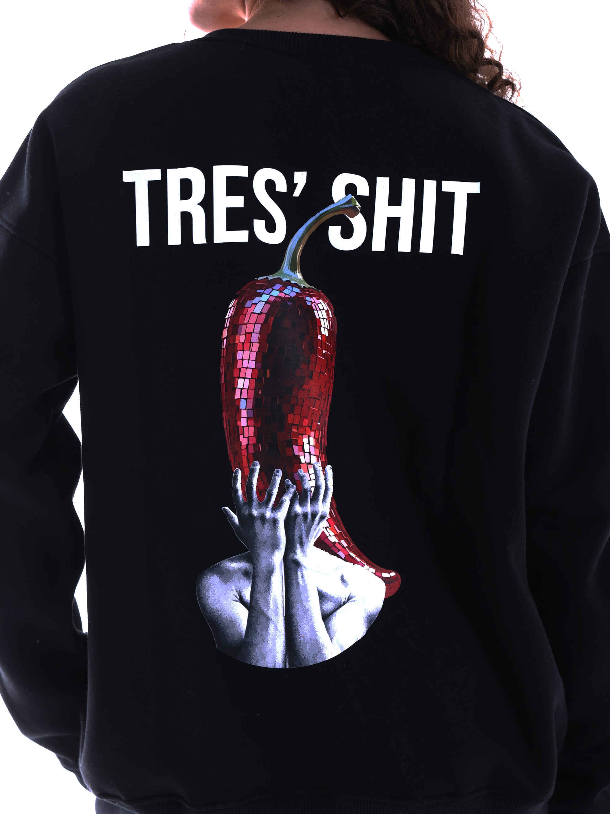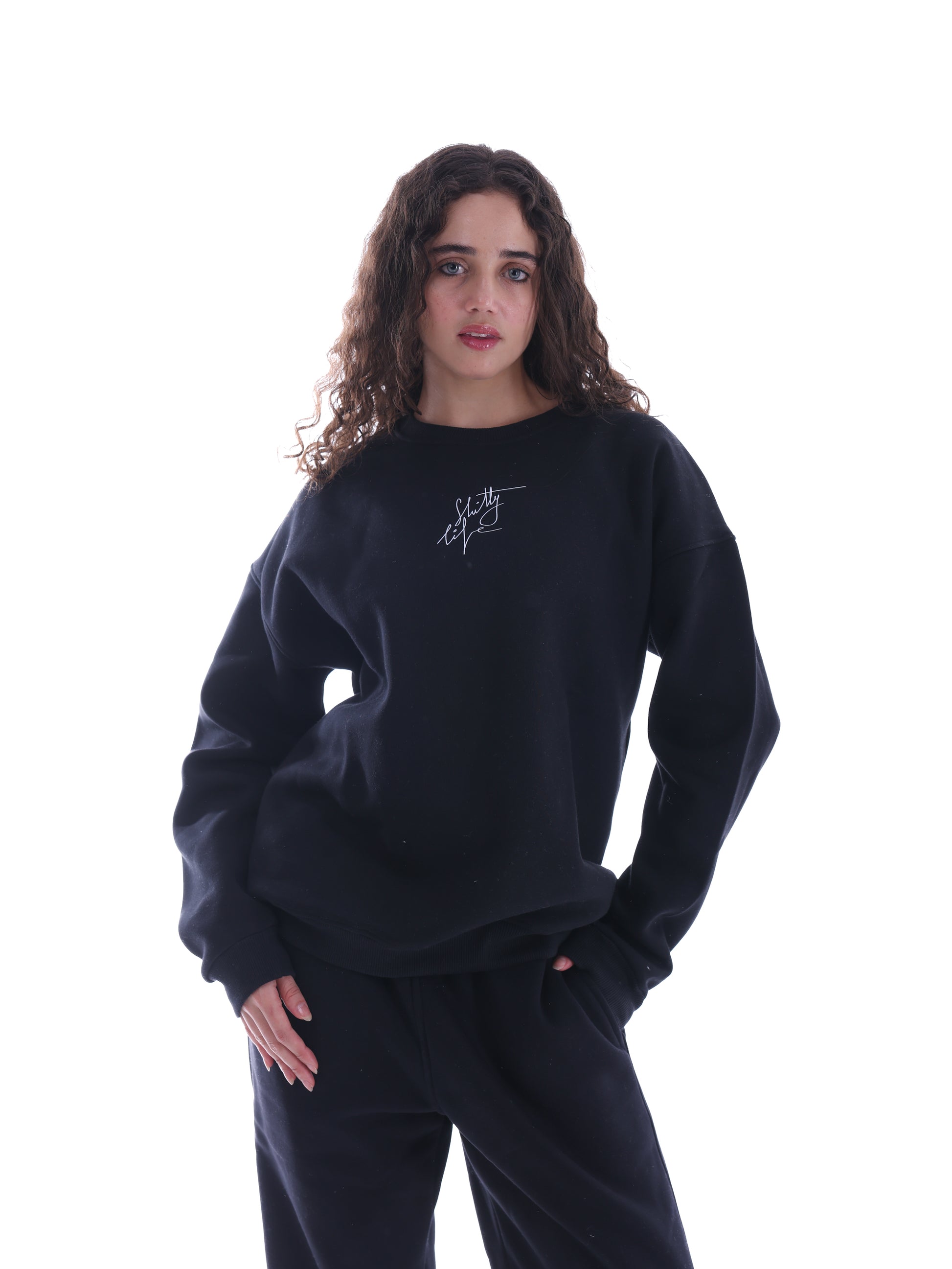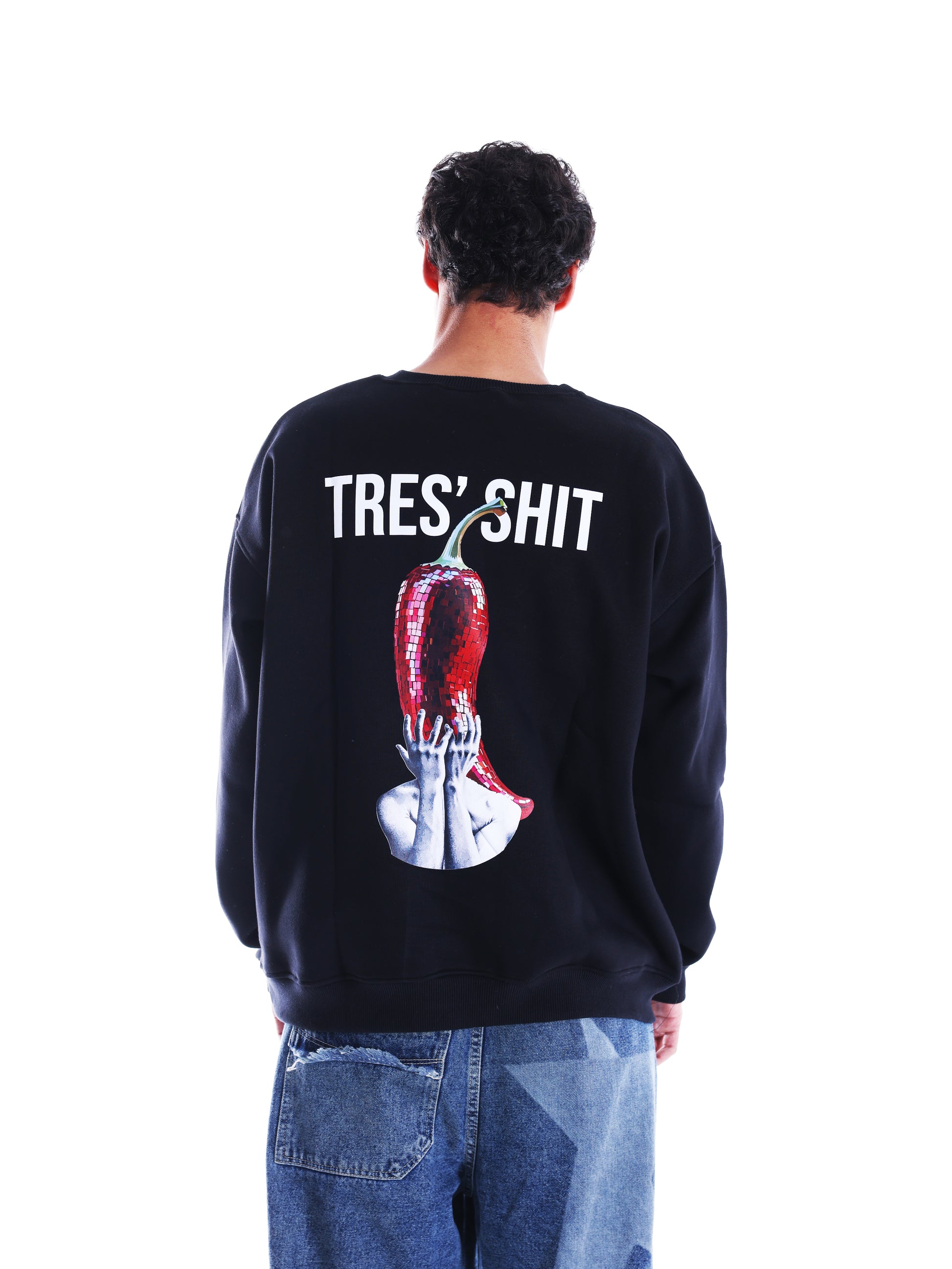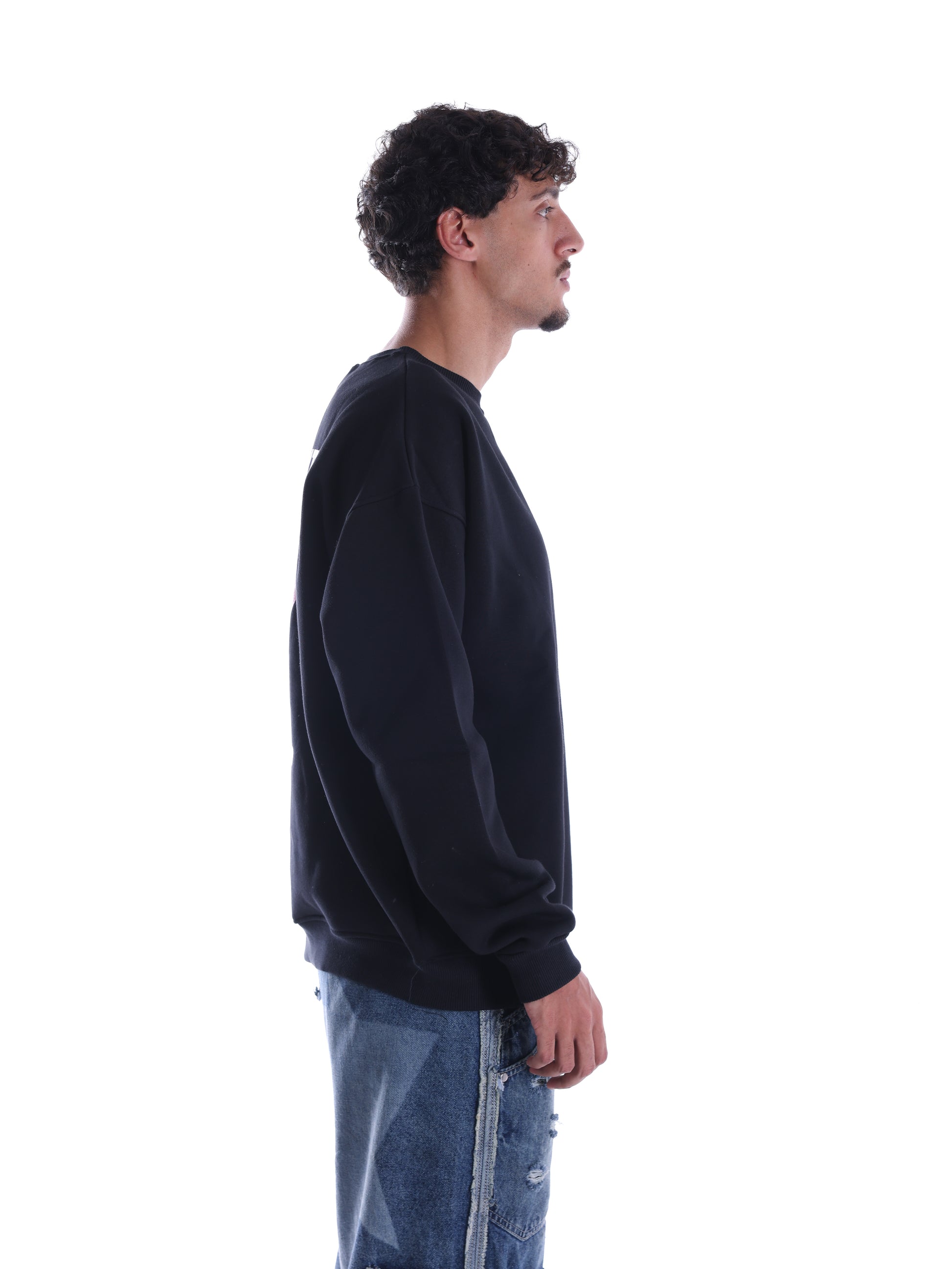 Blunt, raw, and a little reckless. Black crewneck with graphics that don’t ask for approval. For people who know that “too much” is just the right amount.